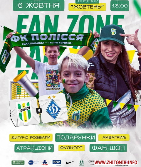 «На фан-зоні працюватиме фуд-корт, зона розваг для дітей та фан-шоп «Полісся», де усі бажаючі зможуть придбати ігрову форму та іншу атрибутику клубу», - зазначають у пресслужбі футбольного клубу.