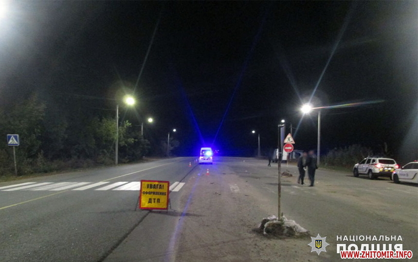 Попередньо, водій автомобіля «Renault Master», 41-річний житель Житомирського району, здійснив наїзд на чоловіка, який перетинав автошлях. Внаслідок дорожньо-транспортної пригоди 50-річний житель місцевої громади помер у «швидкій» дорогою до лікарні.