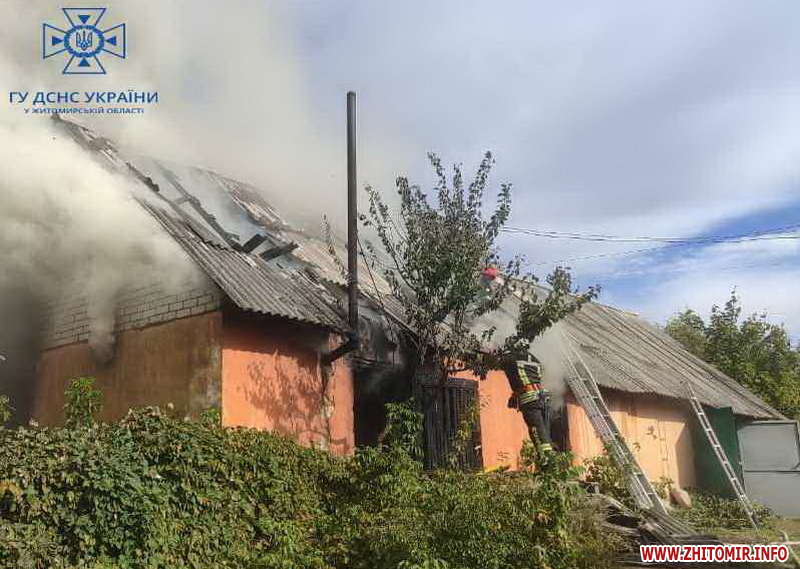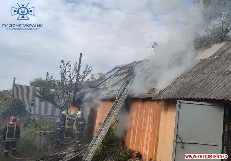 У пресслужбі ДСНС у Житомирській області о 15:14 проінформували, що вогонь встиг знищити покрівлю на площі 50 кв.м та майно.
