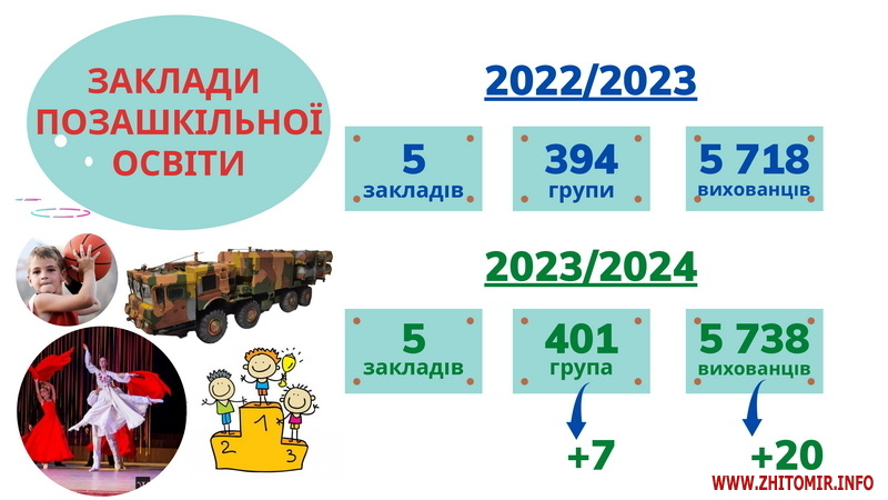 У Житомирі зростає потреба у групах продовженого дня. Минулого навчального року їх було 114 на 3195 дітей. Цього навчального року груп продовженого дня стало 140, це на 26 більше.
