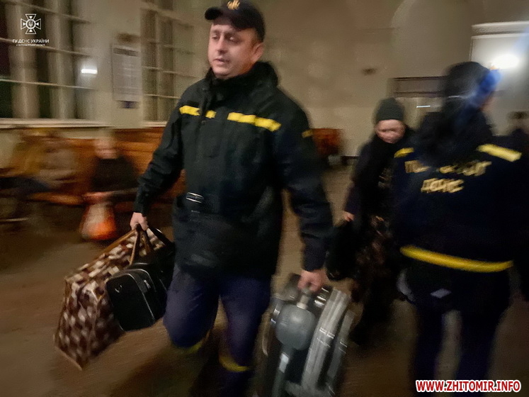 Рятувальники допомогли перенести людям багаж до автобуса, яким далі їх відвезли до м. Звягель, де влаштують у місцях тимчасового проживання.