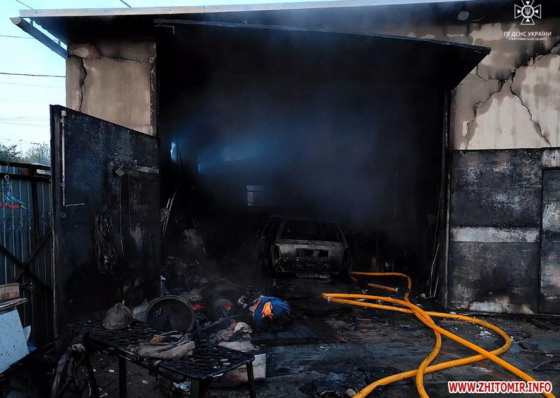 «19 жовтня о 05:36 до Служби порятунку «101» надійшло повідомлення про пожежу в цегляному гаражі у Житомирі. На місці з'ясувалося, що полум’я вже повністю охопило гараж та перекинулося на дах сусіднього. Існувала загроза розповсюдження полум’я на будівлі, розташовані поруч. Ускладнювало гасіння сильне задимлення та велика кількість лакофарбних матеріалів, що зберігалися в гаражі. Керівник гасіння пожежі залучив на допомогу ще два відділення рятувальників для підвозу води. Під час гасіння вони винесли на свіже повітря чотири газових балони. Силами бійців ДСНС о 06:18 пожежу локалізовано, а о 06:48 ліквідовано. Вогонь устиг знищити гараж з автомобілем, дах сусідського гаража. Ще один автомобіль, мотоцикл та два автобуси рятувальники встигли викотити з гаражів, тим самим врятувавши їх від знищення. Також не допущено подальшого перекидання вогню на будинок та ще один гараж», - йдеться в повідомленні.