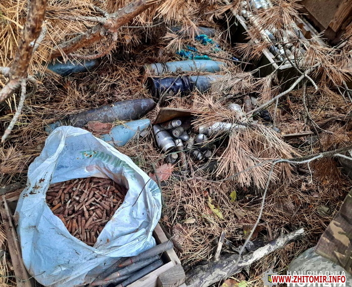 «18 жовтня у Радомишльській громаді гостював 60-річний житель Київщини. Чоловік вирушив на «тихе полювання» до лісу, де й натрапив на «схрон». Зрозумівши, що саме він знайшов, одразу ж повідомив правоохоронців про це. Завдяки виваженим діям грибника вдалося запобігти трагедії. На місці події працювали слідчо-оперативна група відділення поліції № 3 (Радомишль) Житомирського райуправління та поліцейські-вибухотехніки. Правоохоронці нарахували понад 700 патронів, більше десятка різних гранатних пострілів, понад двох десятків артилерійських пострілів, металеві ящики з боєприпасами, метальний заряд до артилерійського пострілу, близько 16 снарядів різного калібру, ще 4 постріли та 3 фрагменти снарядів», - йдеться в повідомленні.