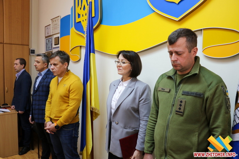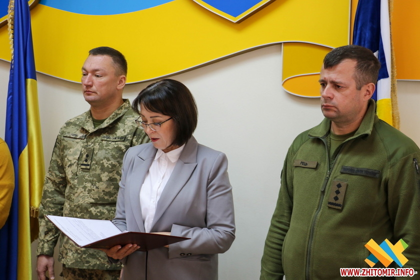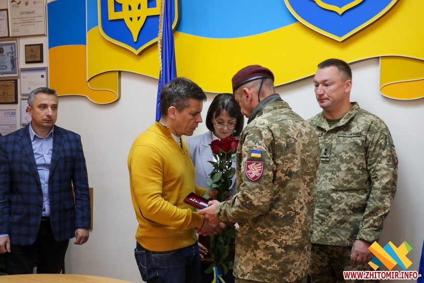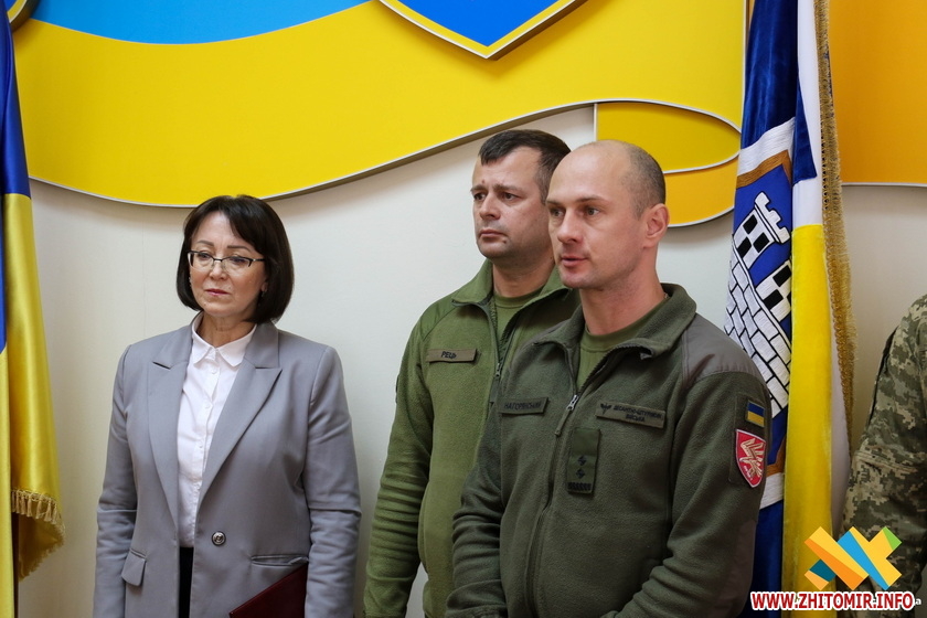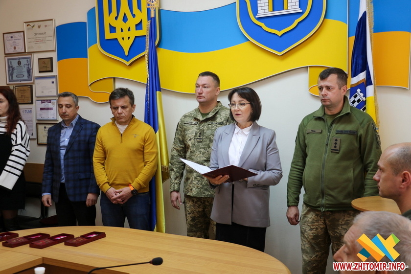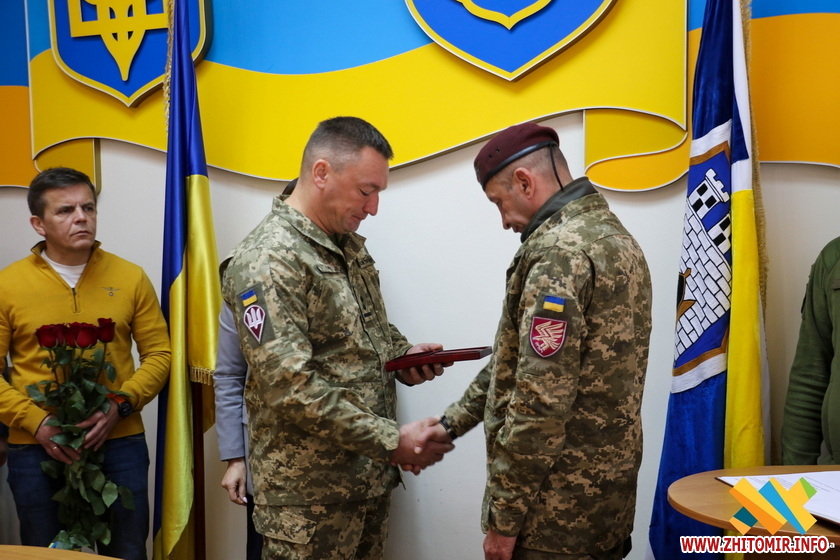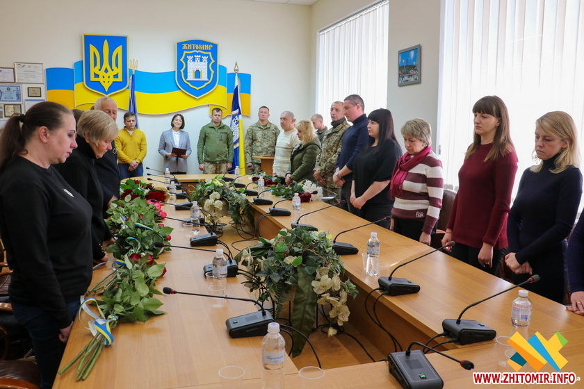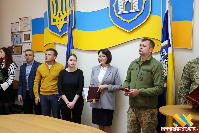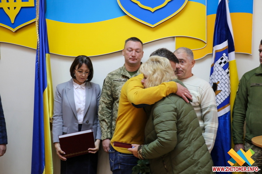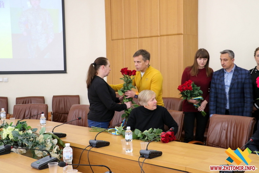 «З-поміж нагороджених двоє Героїв — бійці 44 бригади. Я добре пам’ятаю, як утворилася 44 бригада. Це було на початку березня 2022, – згадує міський голова Сергій Сухомлин. – Кількість житомирян, які добровільно хотіли піти захищати країну була більшою, ніж потреба.Це були хлопці, які не були військовими до цього часу. Але вони ішли, брали на себе відповідальність за те, щоб не довелося брати зброю в руки нашим дітям. Дякую вам за ваших близьких…»