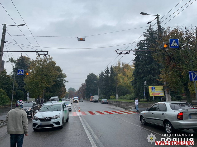 «Дорожньо-транспортна пригода сталася 20 жовтня близько 09:45 по вул. Великій Бердичівській в обласному центрі. Попередньо, водій автомобіля «Renault», 42-річний житомирянин, рухаючись у напрямку вулиці Довженка, здійснив наїзд на двох пішоходів, які перетинали автошлях», - йдеться у повідомленні.