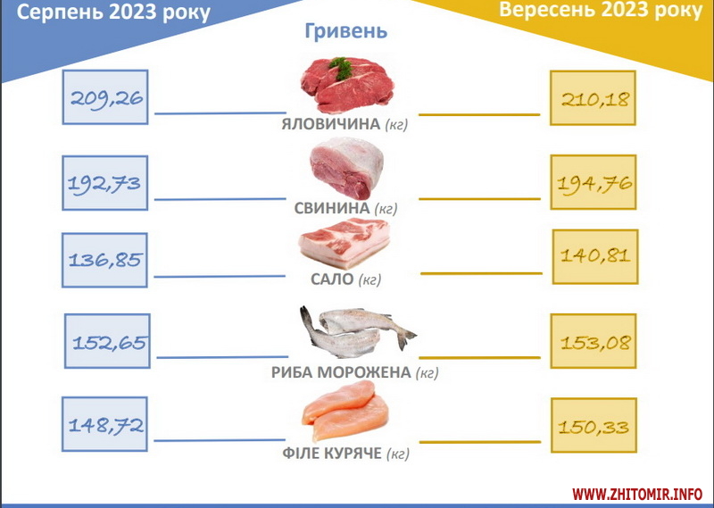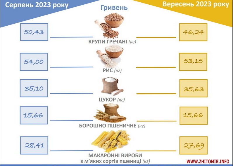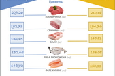 «Зокрема, ціни на макаронні вироби, борошно і крупи, морозиво, молоко, кондитерські вироби з цукру знизились на 4,1 – 1,9%. Рис, соняшникова олія, масло, м'ясо птиці, кава, мінеральні та джерельні води подешевшали на 1,6 – 0,6%. Водночас спостерігалось і збільшення цін: на яйця – на 18,1%, на оливкову олію, маргарин та інші рослинні жири, сало – на 5,4 – 2,9%. Соуси та приправи, цукор, свинина, кисломолочна продукція, безалкогольні напої, кондитерські вироби з борошна подорожчали на 1,9 – 1,2%. Ціни на чай, сир і м’який сир (творог), яловичину, рибу та продукти з риби, хліб та шоколад зросли на 1,0 – 0,3%», - йдеться в повідомленні.