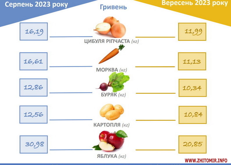 Нагадаємо, на споживчому ринку Житомирської області у серпні 2023 року порівняно з липнем 2023 р. ціни на продукти харчування та безалкогольні напої зменшилися на 2,1%, зокрема, овочі подешевшали на 33%, а цитрусові подорожчали на 12%