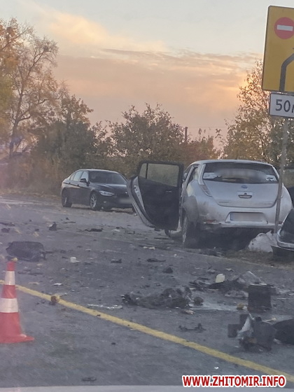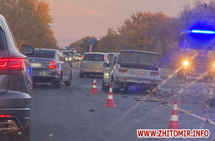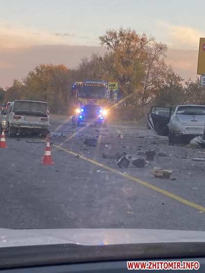 «У зв'язку з дорожньо-транспортною пригодою з потерпілими, що сталася сьогодні, близько 7-ї години, на 198 км автодороги Виступовичі — Житомир — Могилів-Подільський (поблизу села Двірець, Житомирського району), за участю трьох транспортних засобів, рух транспорту ускладнений в обох напрямках», - йдеться у повідомленні.
