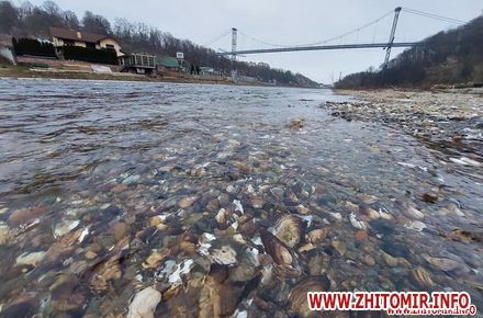 Нагадаємо, з квітня минулого року в Житомирі чистили русло річки Тетерів, це розчищення коштувало майже 6 млн грн. До січня 2023 року русло було почищене і його почали потроху наповнювати водою, а майданчики на берегах річки, планували весною порівняти і зробити там, за словами директора КП «Експлуатація штучних споруд», гарний сквер. Станом на березень 2023 року Тетерів в районі підвісного мосту знову наповнився водою.