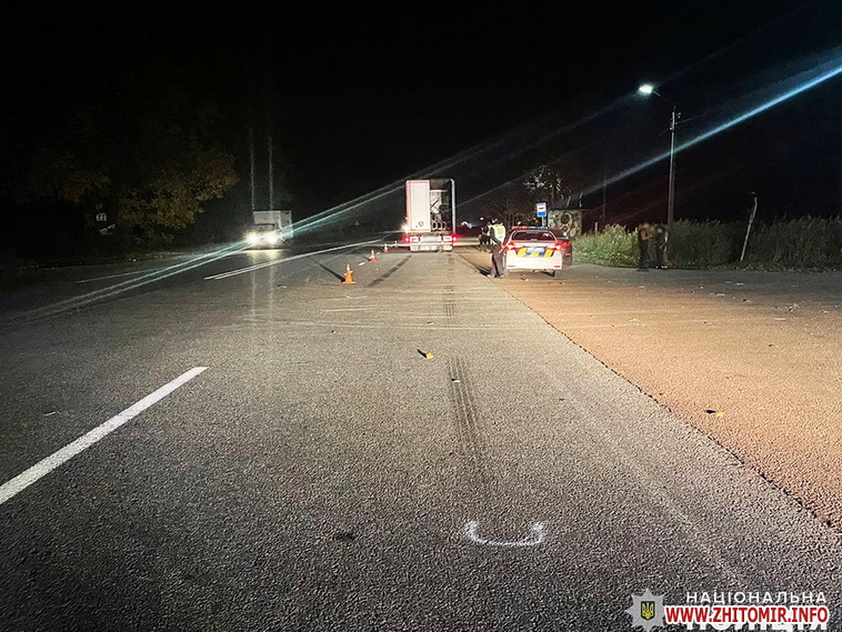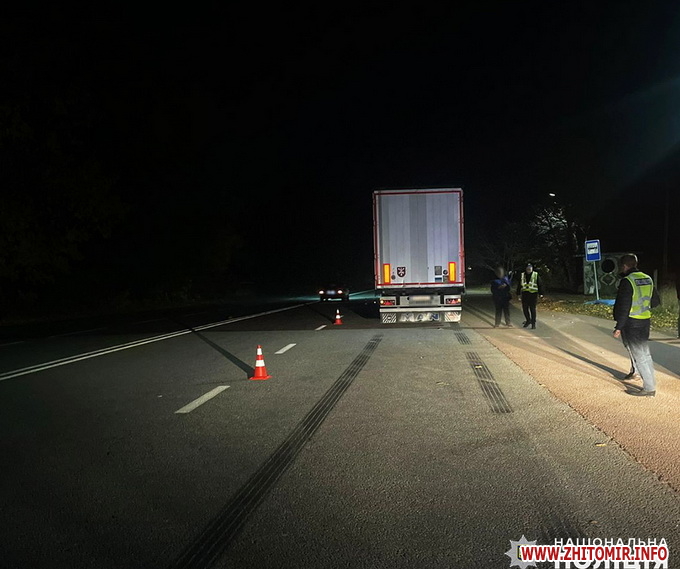 «Дорожньо-транспортна пригода сталася 30 жовтня близько 17:40 на 5 км автодороги Житомир-Сквира, у селі Станишівці. Попередньо, 54-річний водій автомобіля «MAN», житель міста Хмельницького, здійснив наїзд на чоловіка, який у той час перетинав автошлях. На жаль, унаслідок отриманих травм пішохід, 32-річний житель селища Лугини, загинув на місці», - йдеться в повідомленні.