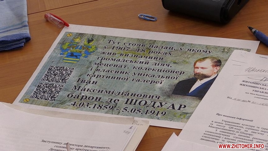 Комісія з топоніміки 3 листопада 2023 року розглянула питання про надання нової назви житомирському парку та встановлення пам’ятної дошки барону де Шодуару.