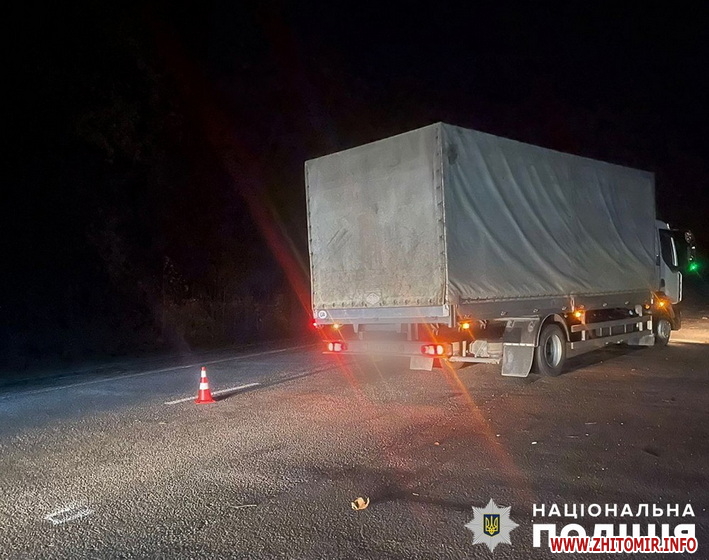 Поліцейські розслідують обставини ДТП з травмуванням жінки-пішохода в Житомирському районі. Подія сталася 3 листопада близько 18:55 на 6 км автодороги Житомир-Сквира у с. Станишівці.