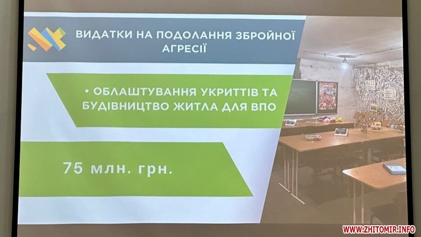 На початку пленарного засідання сесії міської ради 9 листопада військовий закликав депутатів «добре подумати» при формуванні бюджету на наступний рік, натомість у звіті директорка департаменту бюджету та фінансів Діна Прохорчук наголошувала, що на допомогу військовим та подолання наслідків агресії рф з бюджету Житомира вже спрямували 1,2 млрд грн, і ще на цій сесії виділяють 125 млн грн.
