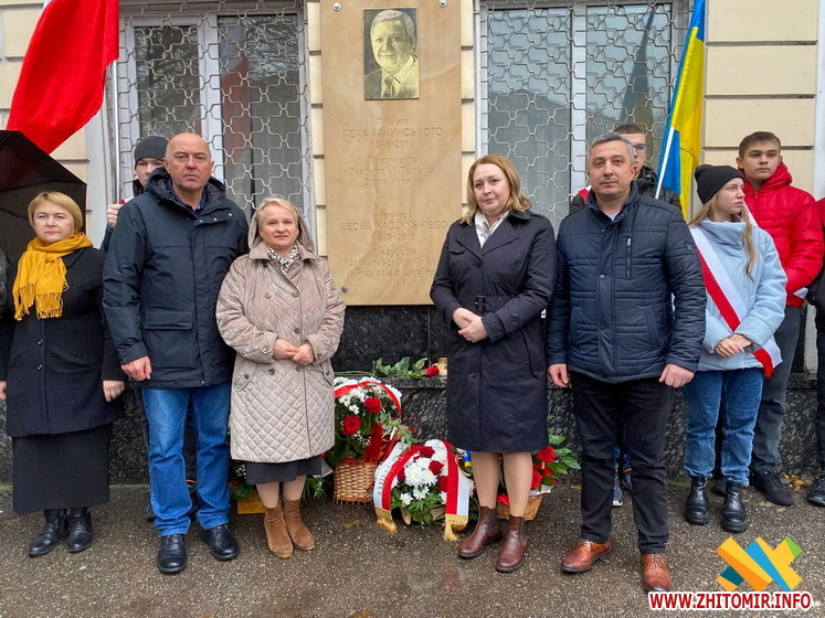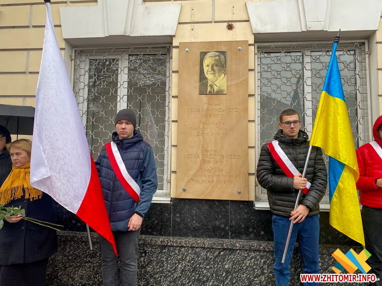 Одна з вулиць Житомира має почесне ім‘я великого друга України, президента Республіки Польща (2005-2010 рр.) Леха Качинського. До меморіальної дошки одного з найвизначніших діячів сучасної Польщі щороку на річницю незалежності Польської Республіки несуть квіти та запалюють лампадки.