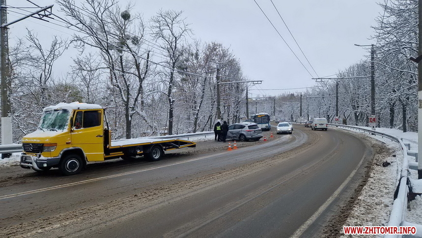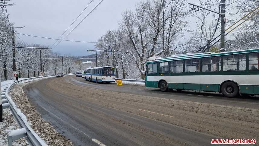 Журналісти Житомир.info побували на місці події. Як видно з відео, через ДТП були можливі затримки тролейбусів, що курсують за цим маршрутом.