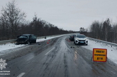 На трасі поблизу Коростеня не розминулися два автомобілі. В обох напрямках ускладнений рух транспорту.