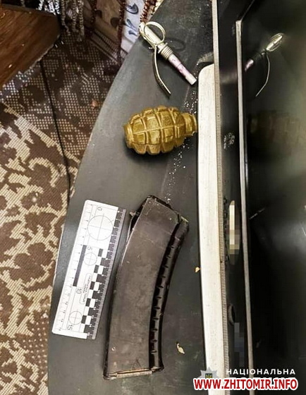 Як повідомляв Житомир.info, 27 жовтня 2023 року в селі Сонячне, поблизу Житомира, правоохоронці вилучили боєприпаси у сімейного дебошира. Чоловік тримав десяток патронів, гранату та підривач просто на веранді.