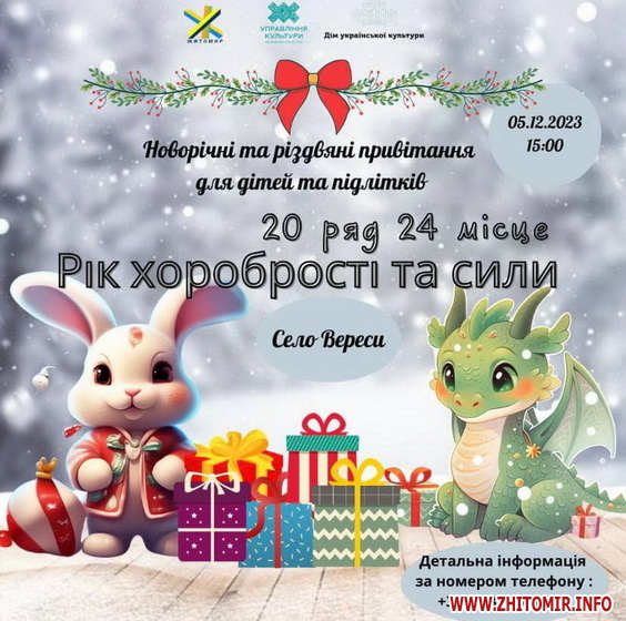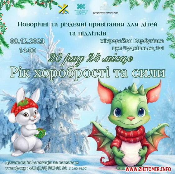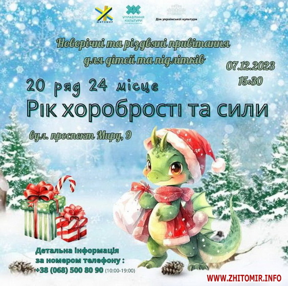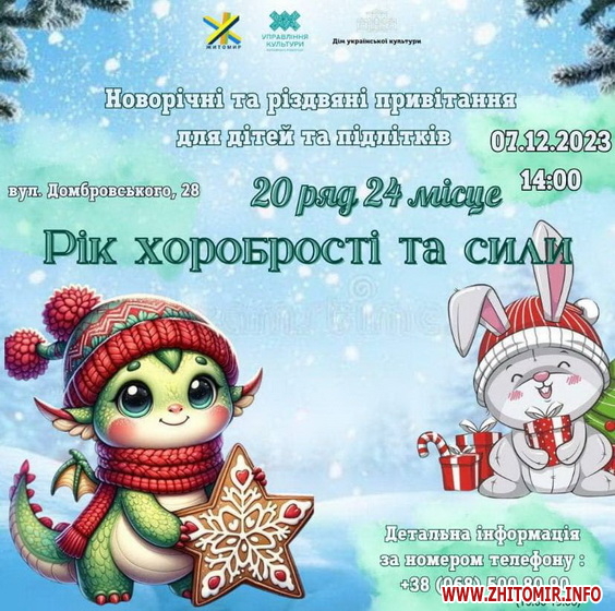 «4 грудня 2023 року ми розпочинаємо серію новорічних та різдвяних привітань «20 ряд 24 місце Рік хоробрості та сили» для дітей та підлітків міста/громади. Обирайте найзручнішу локацію/ день і гайдааа до нас!!!! Щоденно (крім суботи та неділі) подаруємо кожній дитині позитив та новорічний настрій», - йдеться у повідомленні.