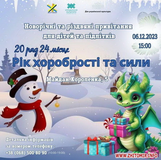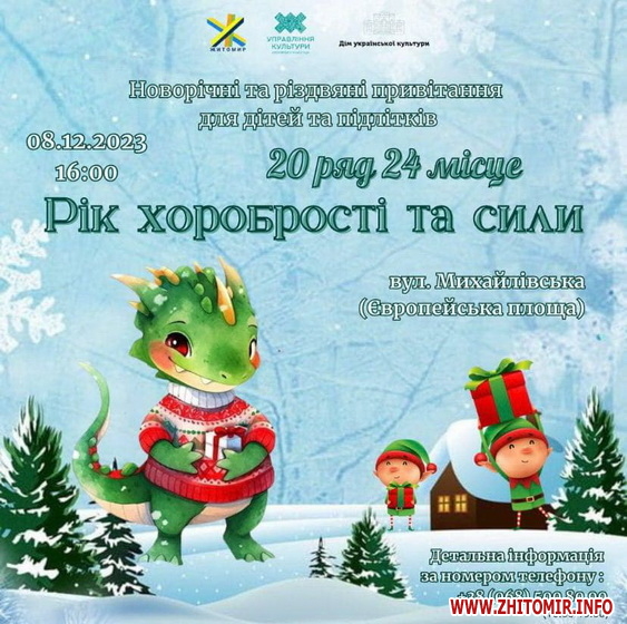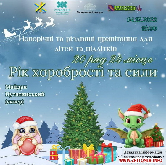 Як повідомляв Житомир.info, резиденція святого Миколая у Житомирі працюватиме з 1 по 24 грудня 2023 року з 12 до 19 години у «Домі української культури». Усі охочі можуть відвідати захід, а класні керівники мають змогу заздалегідь зареєструвати клас на конкретну дату та час. А з 2 грудня у Житомирі стартувала «Різдвяна майстерня», організована міським культурно-спортивним центром спільно з управлінням сім'ї, молоді та спорту міської ради. Маленьких житомирян та дітей-переселенців запрошують на активності протягом місяця.