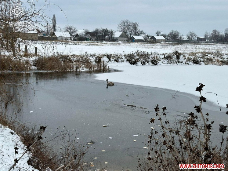 На ставку у селі Житомирського району бійці ДСНС врятували лебедя зі зламаним крилом.