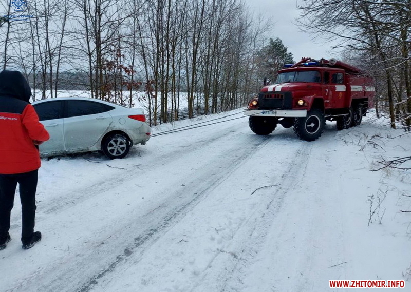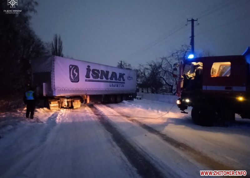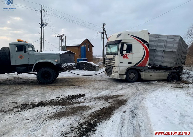 «Упродовж минулої доби рятувальники області три рази залучалися до надання допомоги водіям у відбуксируванні транспортних засобів. Так, на автодорогах поблизу с. Станишівка Житомирського району та с. Куліши Ємільчинської територіальної громади Звягельського району фахівці ДСНС надали допомогу водіям двох вантажних автомобілів. Ймовірно, через ожеледицю їхні транспортні засоби занесло вбік та вони перекрили рух автотранспорту. На щастя, ніхто з людей не постраждав. За допомогою тросів, що причепили рятувальники до пожежних та спеціальних автомобілів, вантажівки вдалося відбуксирувати на рівну ділянку дороги, де вони змогли продовжити свій рух далі. До того ж поблизу с. Миколаївка Лугинської територіальної громади Коростенського району рятувальники вилучали із кювету легковий автомобіль», - йдеться в повідомленні.