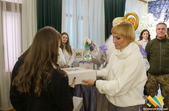 «У цей день поєдналися два величні свята, і ми зібралися у цій залі, щоб вшанувати пам'ять тих, кого сьогодні з нами немає, – наших Захисників. Таку акцію розпочали в День Героїв і сьогодні продовжуємо», - сказала директорка міського центру соціальних служб Ольга Юрченко.