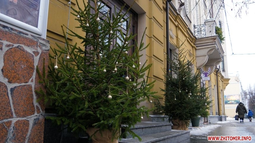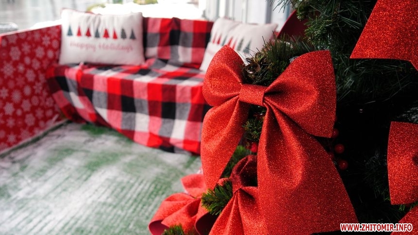 У Житомирі цього року установи та заклади традиційно прикрашають до новорічних та різдвяних свят, а біля деяких встановлює тематичні фотозони, де кожен охочий може зробити гарне святкове фото.