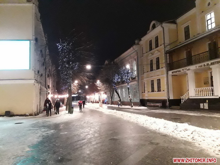 Центральна пішохідна вулиця Житомира станом на 8 грудня вже в очікування Нового року. І хоча цьогоріч, які й у 2022 році, масових святкувань місцева влада не планує і головну ялинку на Михайлівській не прикрашають, але гірлянду на неї повісили та підсвічують ввечері (див. фото нижче).