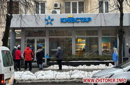 Зранку 12 грудня біля сервісного центру «Київстар» у середмісті Житомира можна побачити черги містян, які не розуміють, чому відсутній зв’язок та інтернет.