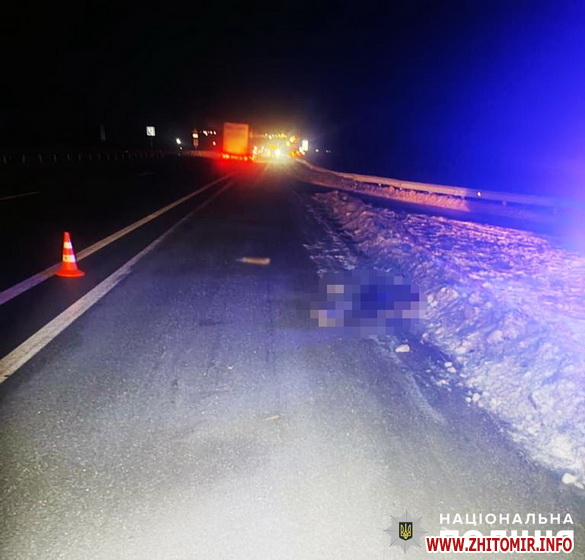На місці події правоохоронці попередньо з’ясували, що 33-річний житель столиці, керуючи вантажним автомобілем Iveco, здійснив наїзд на 41-річного жителя м. Звягеля, який перебував на проїзній частині. Від отриманих травм чоловік загинув.