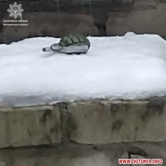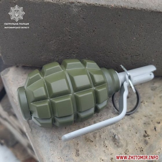 Сьогодні патрульні отримали повідомлення про виявлену гранату на одній з вулиць у Житомирі.