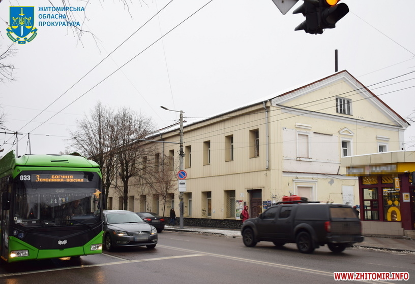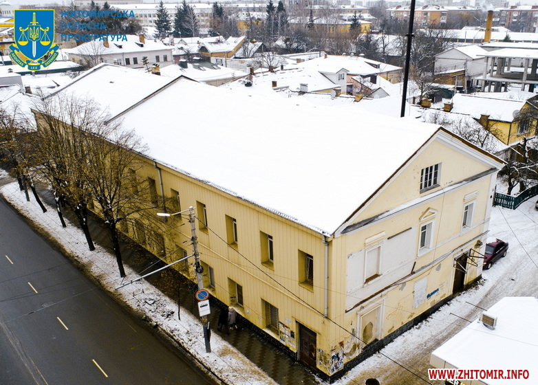 Житомирська обласна прокуратура витребувала з незаконного володіння двоповерхову будівлю у центрі міста. Наразі її фактично повернуто у власність держави та передано у користування державному університету «Житомирська політехніка».