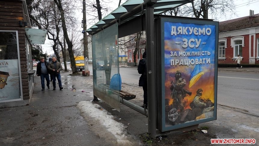 Як повідомляв Житомир.info, 11 квітня 2023 року в соцмережах з’явилося відео, на якому видно, як молодий чоловік б’є ногами плакат із зображенням воїна на одній із зупинок громадського транспорту. Інцидент трапився на проспекті Миру. Справу щодо 27-річного чоловіка скерували до суду.