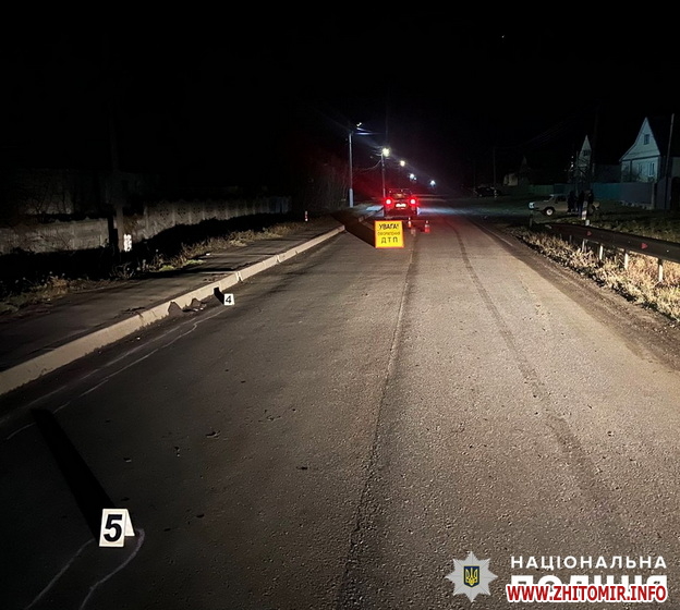 «Подія сталася у Квітневій громаді 19 грудня близько 18:00. На місці події працювали слідчо-оперативні групи слідчого управління та відділення поліції №2 (Попільня) Житомирського райуправління поліції ГУНП в області. Попередньо, 21-річний водій автомобіля «Chery», житель обласного центру, здійснив наїзд на чоловіка, який в той час знаходився на проїзній частині дороги. Внаслідок ДТП від отриманих травм 52-річний місцевий житель загинув на місці події. За висновками медичного освідування керманич автомобіля був тверезий», - йдеться в повідомленні.