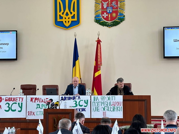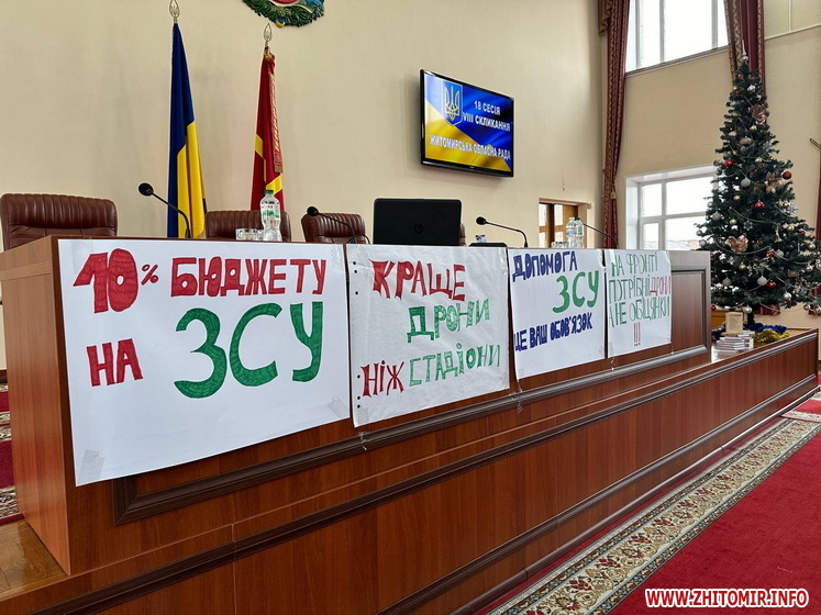 21 грудня розпочалась чергова 18 сесія Житомирської обласної ради 8 скликання. Журналісти Житомир.info повідомляють, що в сесійній залі розклеюють плакати.