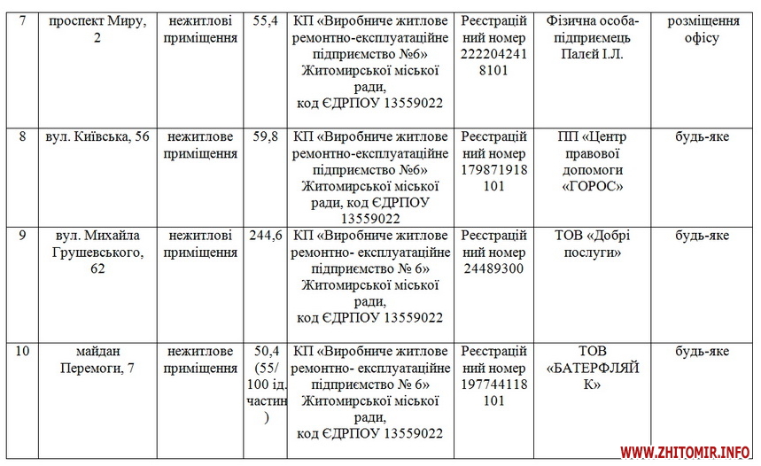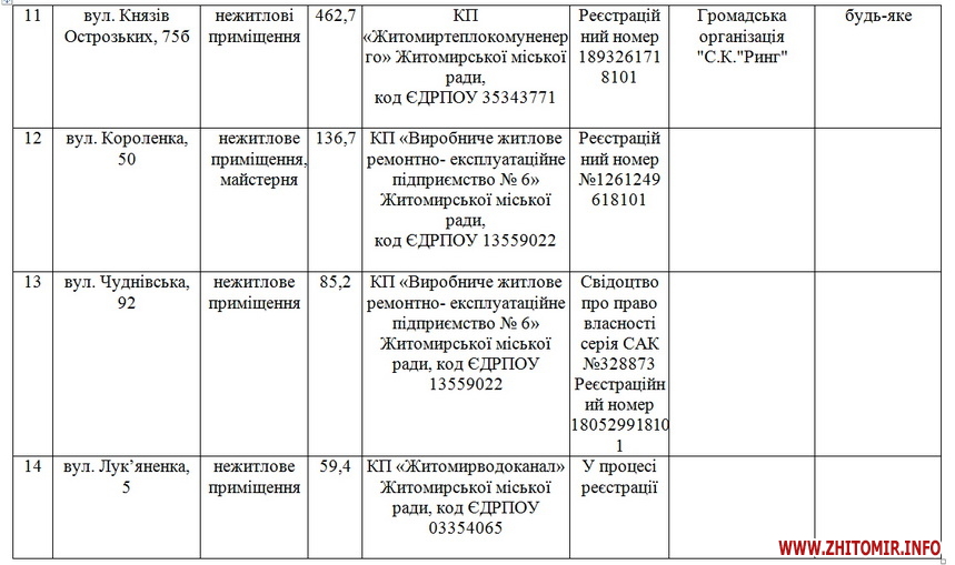 Як повідомляв Житомир.info, у Житомирі від початку 2023 року орендарям, які зробили невід’ємні поліпшення, вже продали вісім комунальних приміщень: