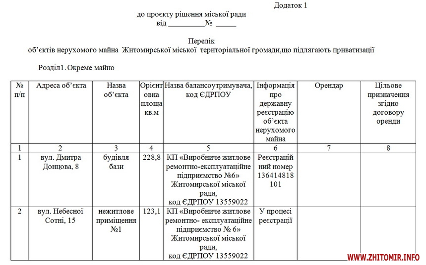 Депутати затвердили перелік об’єктів нерухомого майна Житомирської міської територіальної громади, що підлягають приватизації.