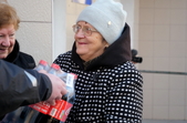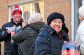Щоб роздати мільйон пляшок потрібно дуже багато людей. Тому працівники Кока-Кола у ролі волонтерів особисто, з рук в руки, передають подарунки. Кажуть: Кока-Кола – це про відчуття прийдешніх свят, тому приємно дарувати людям такі емоції.