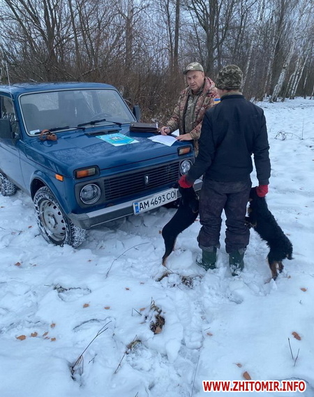 Як повідомляв Житомир.info, вночі 29 жовтня 2023 року у лісі біля села Кам’янка затримали двох мисливців, які не мали документів на зброю. Вилучили рушницю, набої та собак.