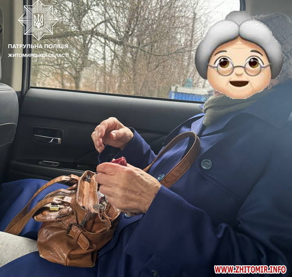 Патрульні отримали повідомлення, що на перехресті вулиць Лесі Українки та Небесної Сотні у Житомирі знаходиться розгублена жінка похилого віку. Як виявилося, вона не пам’ятала, де проживає.