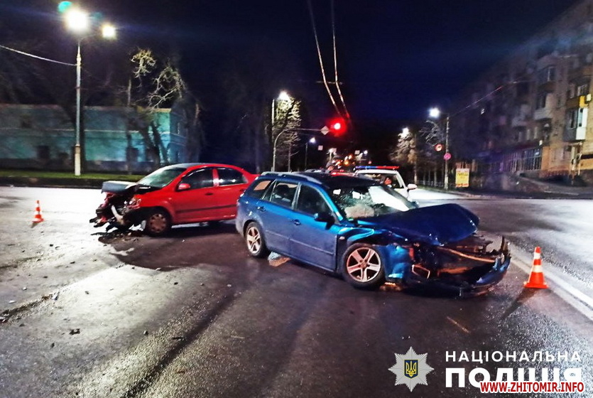 У Житомирі внаслідок зіткнення легковиків на перехресті вулиць Великої Бердичівської та Жуйка травми отримали 5 людей, серед них двоє дітей.