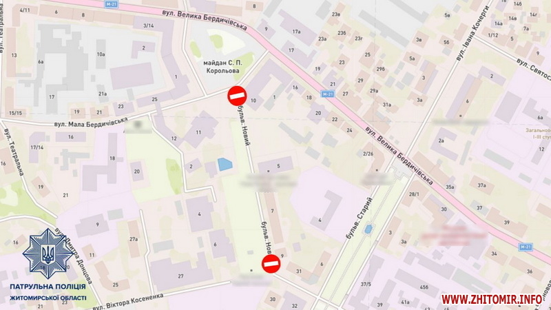 У Житомирі перекриють рух транспорту на Новому бульварі з 8 вечора 27 грудня до 14 години 28 грудня.