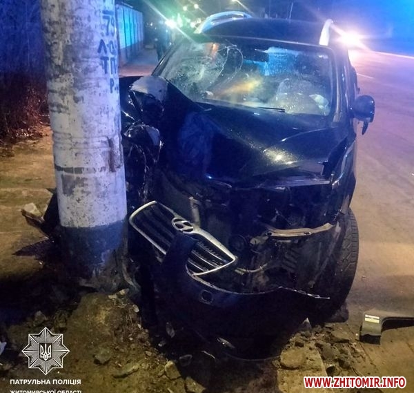 Увечері 29 грудня на проспекті Незалежності водій автомобіля Hyundai не дотримався безпечної швидкості руху, не впорався з керуванням та наїхав на електроопору. Травми отримали двоє людей.