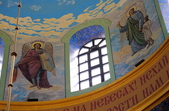 «У нашому храмі є розписи, які залишилися з того часу, коли у 1961 році закрили храм і повністю знищили розписи. Залишилася лише ікона «Успіння Матері Божої», ікона «Моління у чаші», і все, що бачите у куполі – це небо, янголи. Ми все це відновили, наші автентичні розписи, які були, коли збудували храм», – сказав отець Богдан Бойко, настоятель Свято-Михайлівського кафедрального собору.