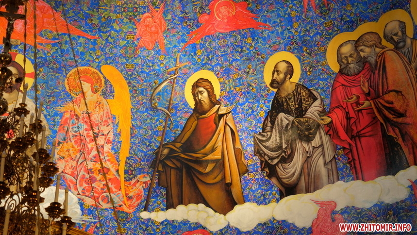 У житомирському Свято-Михайлівському кафедральному соборі завершили розпис великої зали. Як розповідає настоятель, роботи розпочалися ще у 2000 році, спочатку відновлювали притвор, далі центральну частину, стіни, купол та вівтар, і ось на кінець 2023 року храм мав зовсім інший вигляд.