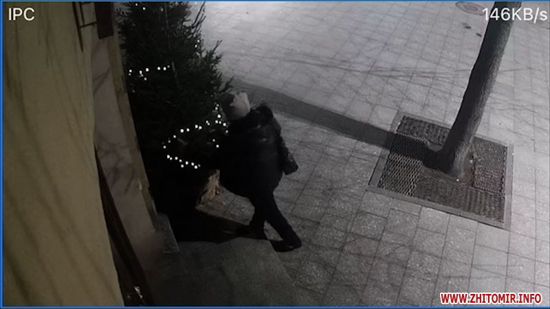 Нагадаємо, що у ніч з 15 на 16 грудня у центрі Житомира невідомий вкрав новорічні прикраси з тераси кафе-кондитерської, яке розташоване на майдані Перемоги.