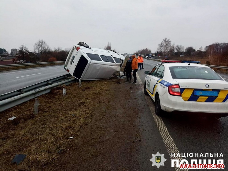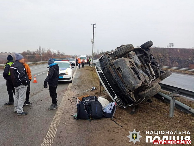 Попередньо, 48-річний житель м. Звягеля, керуючи автомобілем «Chevrolet Aveo», не впорався з керуванням та з’їхав у кювет, після чого автомобіль перекинувся. У результаті травми отримала пасажирка транспортного засобу, 40-річна жителька столиці. Жінку було госпіталізовано до Баранівської центральної лікарні», - йдеться в повідомленні.
