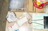 У результаті проведених заходів правоохоронці виявили та вилучили понад 12 тисяч гривень готівкою, банківські картки, майже 30 мобільних телефонів і кілька десятків сім-карток та тримачів для них, фасувальні матеріали, приладдя для виготовлення психотропу, зокрема, колби, ваги, а також сировини та вже розфасовані «дози» з вмістом кристалічної речовини.