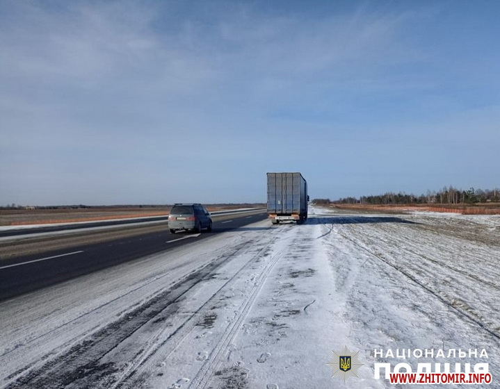 Поліцейські розслідують обставини ДТП на Звягельщині. Дорожньо-транспортна пригода сталася зранку 12 січня на автотрасі Київ-Чоп, поблизу с. Кам‘яний Майдан.