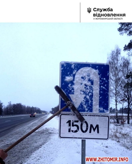 - вирівнюємо після поривів вітру дорожні знаки та очищуємо їх від снігу», - інформують дорожники.